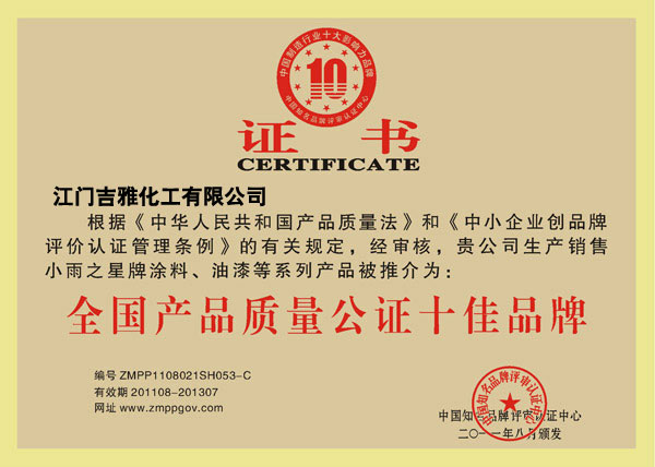 全国产品质量公证十佳品牌
