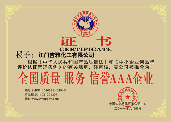 全国质量服务信誉AAA企业